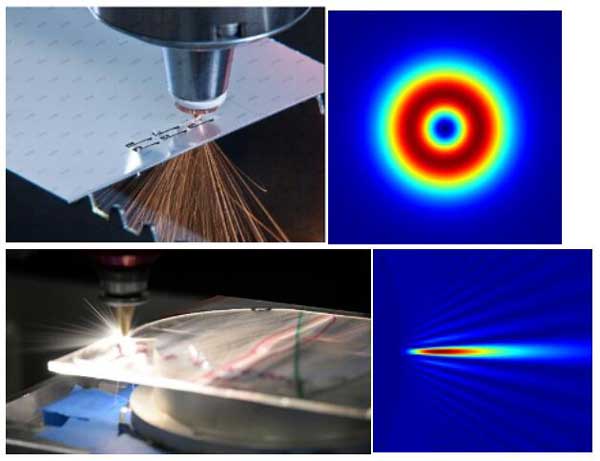 圖3.5 金屬切割與環(huán)形光斑(上),玻璃切割與貝塞爾焦斑(下)