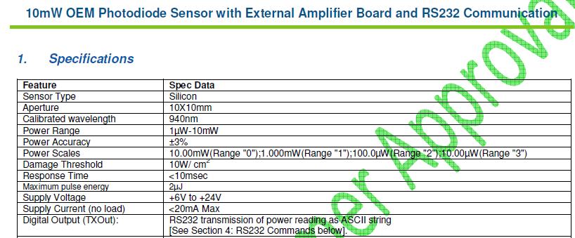 功率能量OEM探頭OPHIR原廠可以根據客戶的指定校準波長以及指定功率進行研發和生產OEM探頭,大大提高了探頭的針對性以及性價比,信號輸出方式RS232 / Analog output / USB等可選。
