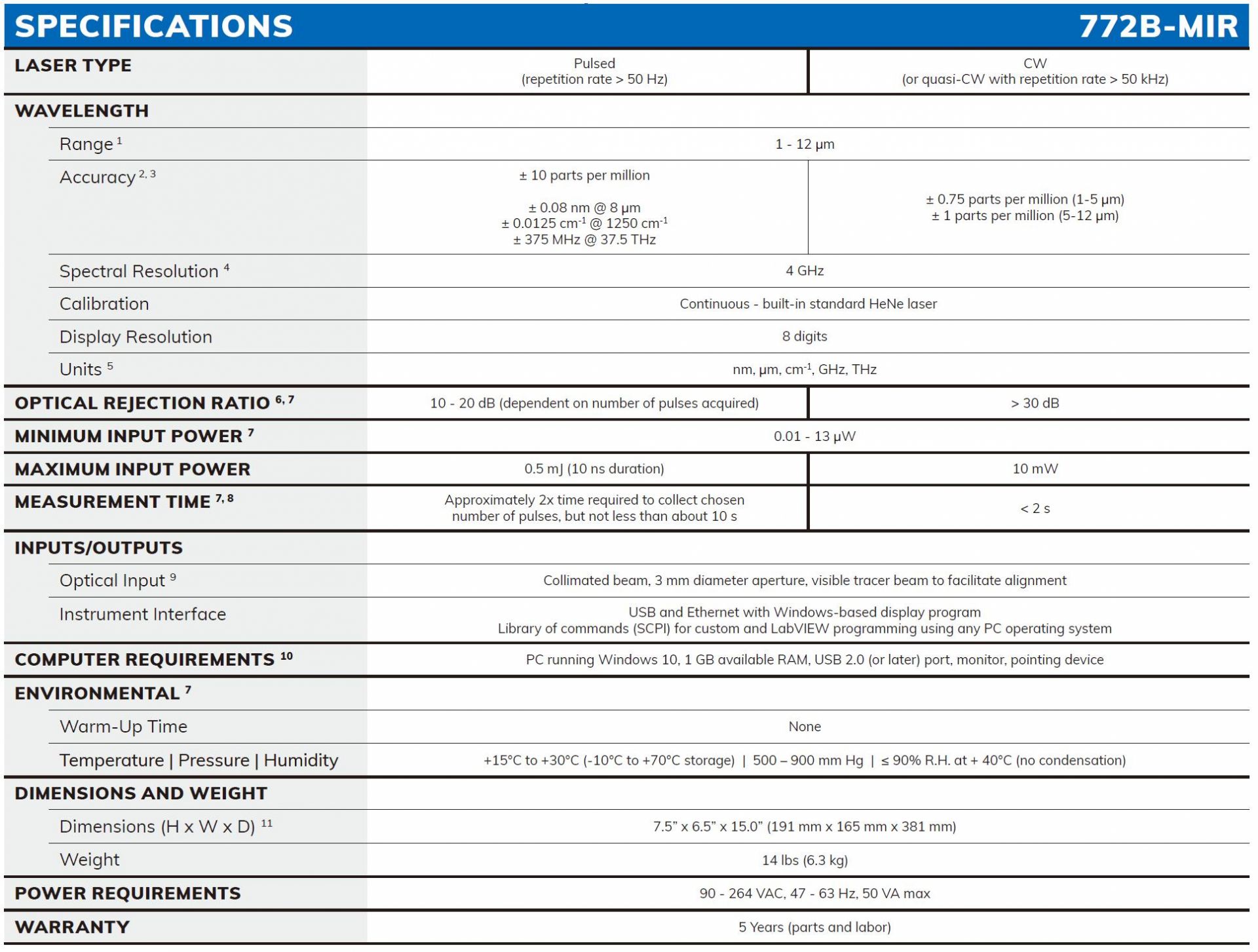 772B-MIR 激光光譜分析儀將成熟的邁克爾遜干涉儀技術(shù)與快速傅里葉變換分析相結(jié)合,可以測量 1 至 12μm 范圍內(nèi)的連續(xù)激光和脈沖激光的光譜特性。772B-MIR 系統(tǒng)的獨(dú)特之處在于它可以測量重復(fù)頻率低至50Hz 的脈沖激光。