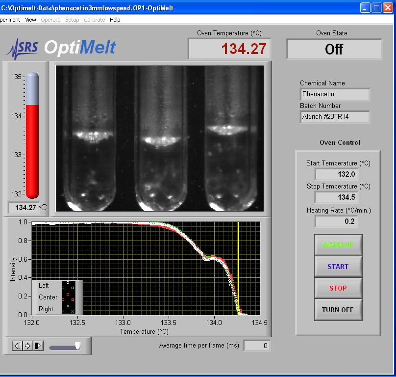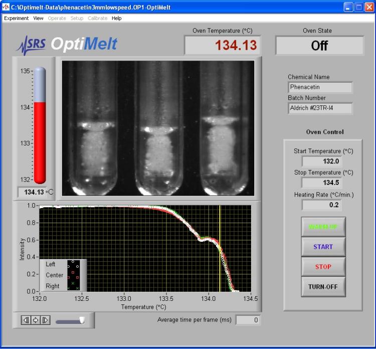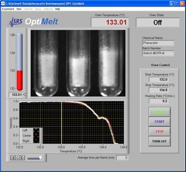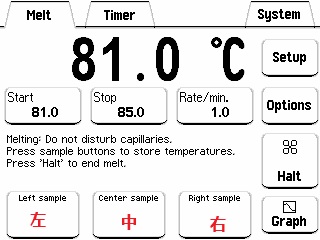 SRS OptiMelt熔點分析儀的用戶可以利用肉眼觀察圖像,并隨時點擊儀器前面板的左,中,右按鈕記錄對應樣品的個性化記錄點。
