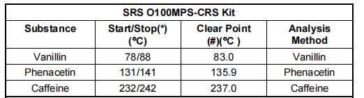 符合認證參考標準的CRS試劑盒(SRS公司產品編碼 Part# O100MPS)可追溯至世衛組織國際藥典標準,可直接從SRS斯坦福研究系統或其代理商處購得,包含如下標定物質: