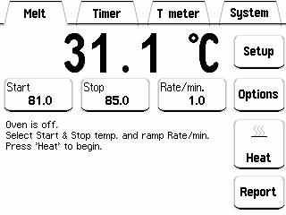 小型加熱爐的主要優點是沒有過沖。這使您可以將起始溫度設置在低于化合物預期熔點的<5°C,其可以快速加熱和冷卻,并允許僅持續2至3分鐘的測定。
