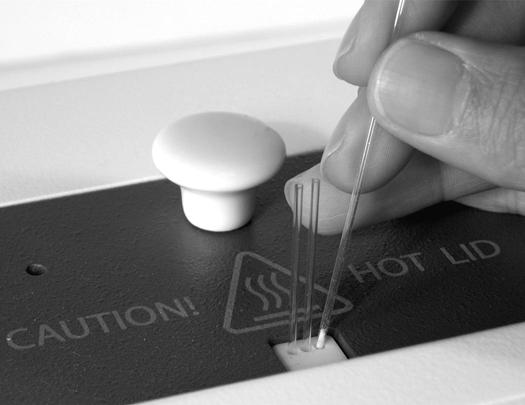 • 在將任何毛細管放入樣品槽之前,確保OptiMelt熔點分析儀已接電和設置初始溫度低于樣品預期熔點溫度。