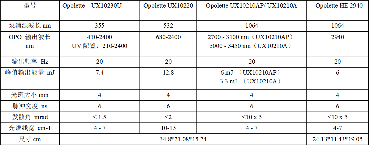 • 1064nm、532nm、355nm泵浦波長可選,超寬的波段覆蓋范圍UV、VIS、IR;