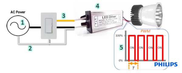 LED頻閃效應(yīng)由多種因素決定,其中主要的幾個(gè)來源是:電壓源的變化(噪聲)、外部耦合噪聲、調(diào)光相位不穩(wěn)定、驅(qū)動(dòng)不穩(wěn)定、驅(qū)動(dòng)方式。