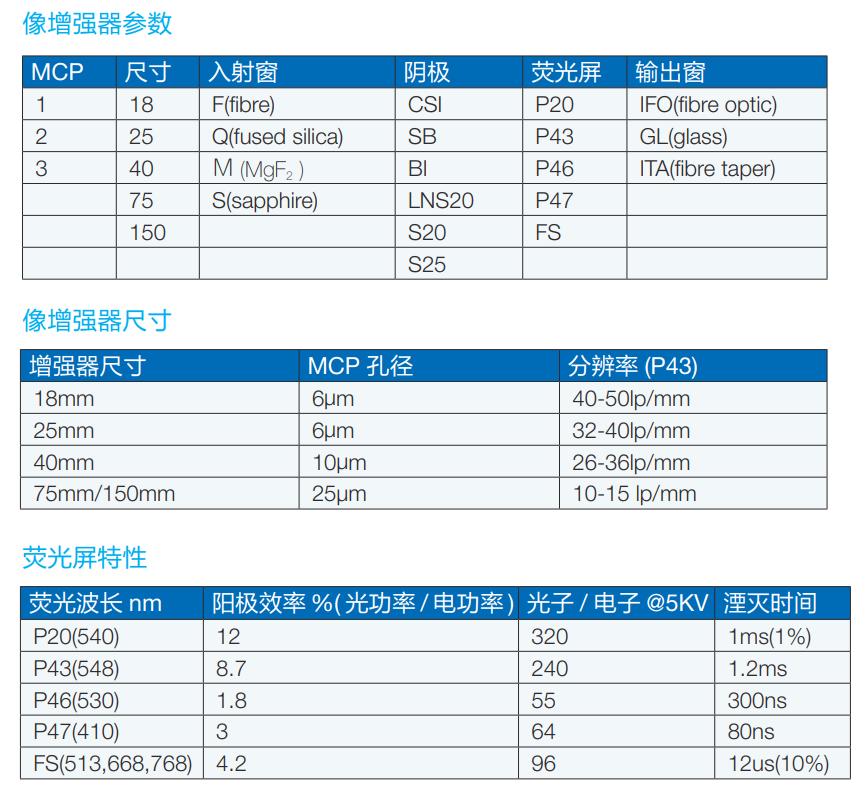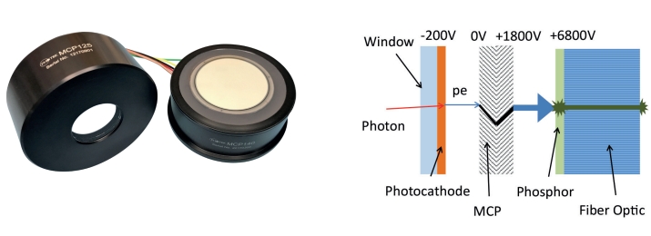 1. MCP像增強器:英國Photek 是一家生產像增強器、超快 PMT、條紋相機管、真空粒子探測器以及單光子計數相機系統的廠家。其像增強器最大口徑可達150mm,*多可做到 3級MCP 連用。
