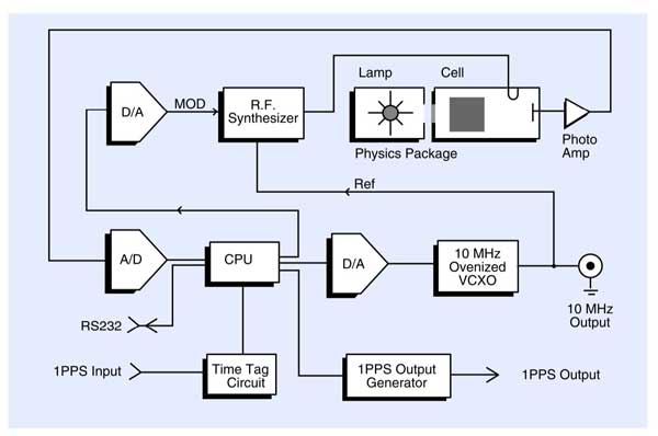 銣鐘又被稱為銣原子鐘,是由銣原子部分和壓控晶體振蕩器組成。銣頻標(biāo)是一種被動(dòng)型原子頻率,利用的是基態(tài)超精細(xì)能級(jí)之間的躍遷,躍遷頻率為6.834,682,612 GHz。原子遷躍對(duì)微波信號(hào)起鑒頻作用而產(chǎn)生誤差信號(hào),通過鎖相環(huán)路伺服晶振的頻率,使激勵(lì)信號(hào)頻率鎖定到原子躍遷頻率,實(shí)現(xiàn)晶振輸出頻率的高度穩(wěn)定和準(zhǔn)確。