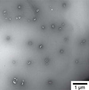 圖1顯示了投射電鏡下人類尿液里的囊泡。由于細胞會把囊泡釋放到周圍環境和體液中,故血液,唾液和尿液當中都含有大量的細胞產生的囊泡。