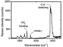 圖4.單血小板源性囊泡的拉曼光譜圖。拉曼峰表征了出現在這種囊泡內的特征化學成分