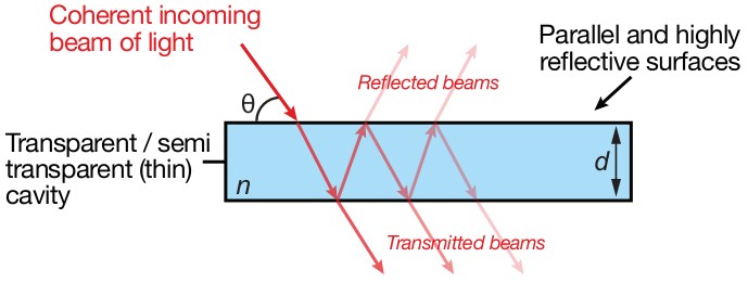 但與背感光芯片提供較高量子效率伴生的一個不利效應,就是其在特定波長范圍內產生的光學標準具效應。背感光芯片前后兩個彼此平行的表面,構成了類F-B干涉儀的兩個鏡片,在滿足兩個表面間距與入射相干光波長匹配條件的情況下,對特定波長范圍內的光,形成了干涉條紋。這種干涉條紋,對本真的待測信號,可以施加高達40%的有害周期調制因子,嚴重削弱了數據的可信性,給科研工作者的工作,帶來了極大的負面影響。