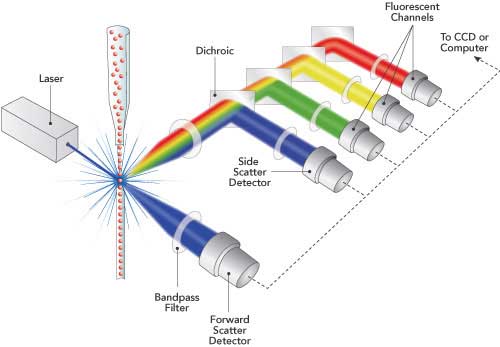 流式細胞儀主要可分為三個主要部分,分別是流體學、光學和電子學系統。