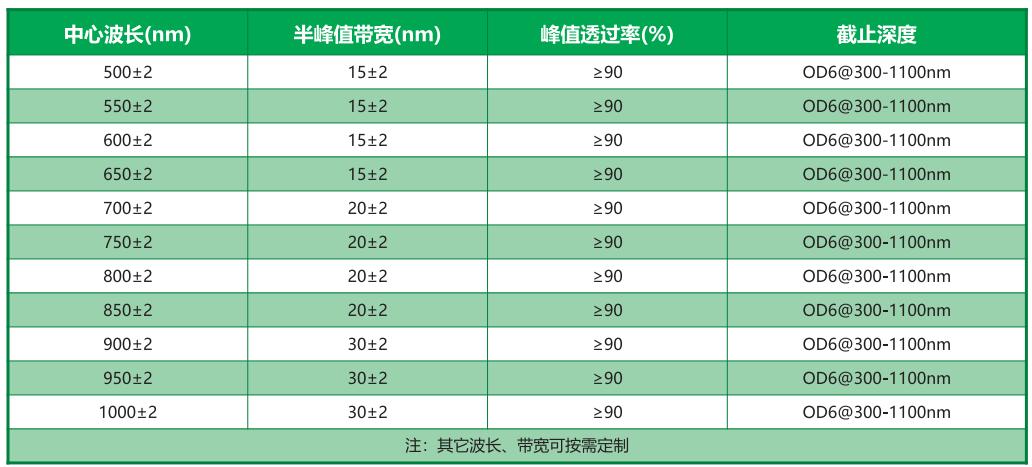 常用窄帶濾光片產品