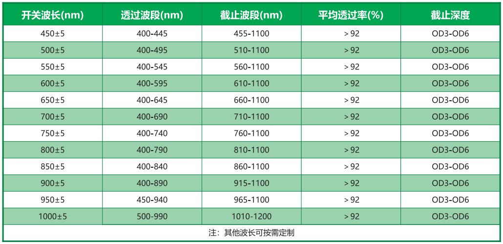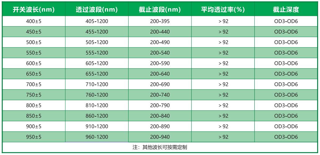 常用長波通濾光片