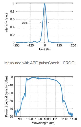 受限制于增益帶寬及非線性色散,光纖飛秒激光器一般較難實現100fs 以下的輸出,尤其是在高功率輸出時。來自德國的VALO INNOVATIONS 通過獨到的技術,一舉將光纖飛秒激光器脈寬推進至40fs,讓光纖激光成為真正的“超短脈沖”激光,并且提供高達3W 的平均功率。