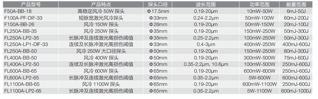 • 可用于單發脈沖能量測量,還提供美容 IPL 光專用測試探頭;
