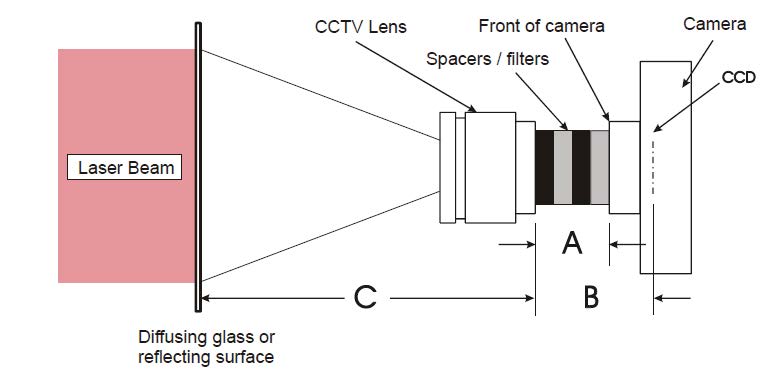 超大的光斑既不能適用于CCD 相機(jī)直接探測(cè),而大口徑的縮束系統(tǒng)(望遠(yuǎn)鏡)成本高、體積大、像差難以保證。將超大光斑入射到散射體上,再經(jīng)過CCTV lens 成像于CCD芯片上,是一種便利的方法。