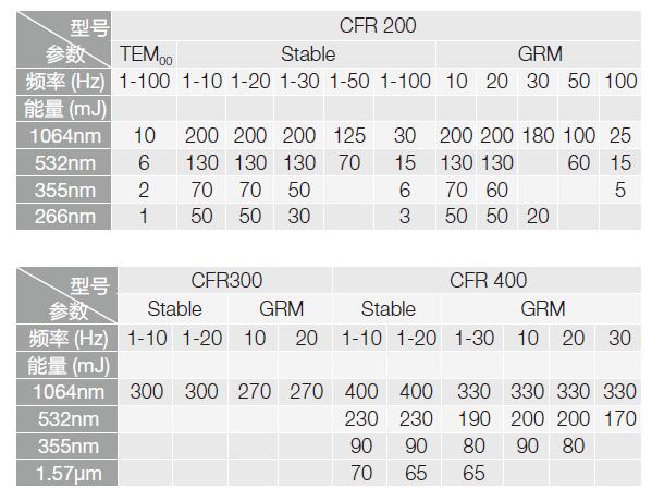 CFR 系列燈泵納秒脈沖激光器技術參數