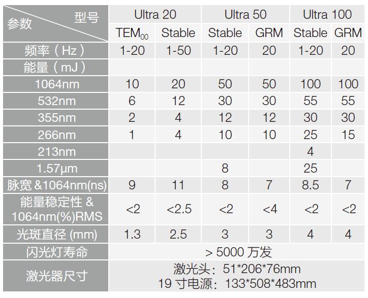 ULTRA 系列燈泵納秒脈沖激光器