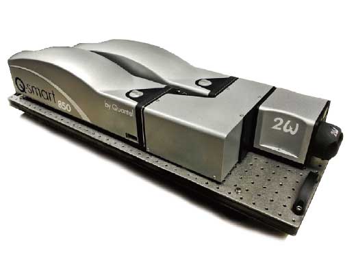 QSmart TWINS 為兩臺QS850 經(jīng)過偏振合束構(gòu)成雙脈沖共線輸出。兩臺激光器共用倍頻模塊,故可通過切換/ 拔插倍頻模塊獲取不同的波長。