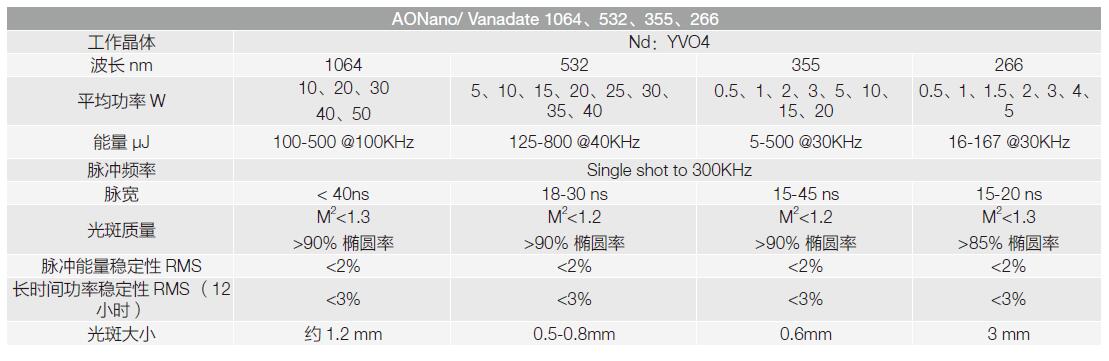 高重頻脈沖固體激光器AONano主要參數(shù):