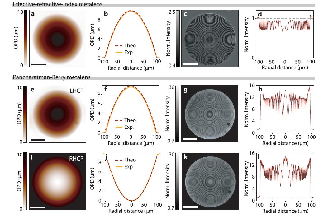 超表面是由大量亞波長單元在二維平面上周期或非周期排布而構成的人工結構陣列,能夠對電磁波進行靈活操控。由于超表面具有超薄結構和較強的可自主設計性而受到廣大研究者青睞。超透鏡是一種二維平面透鏡結構,其體積極小,重量輕,易于集成,可實現對入射光振幅、相位、偏振等參量的靈活調控,在超分辨顯微成像、全息光學、消色差透鏡等方面有重要應用。