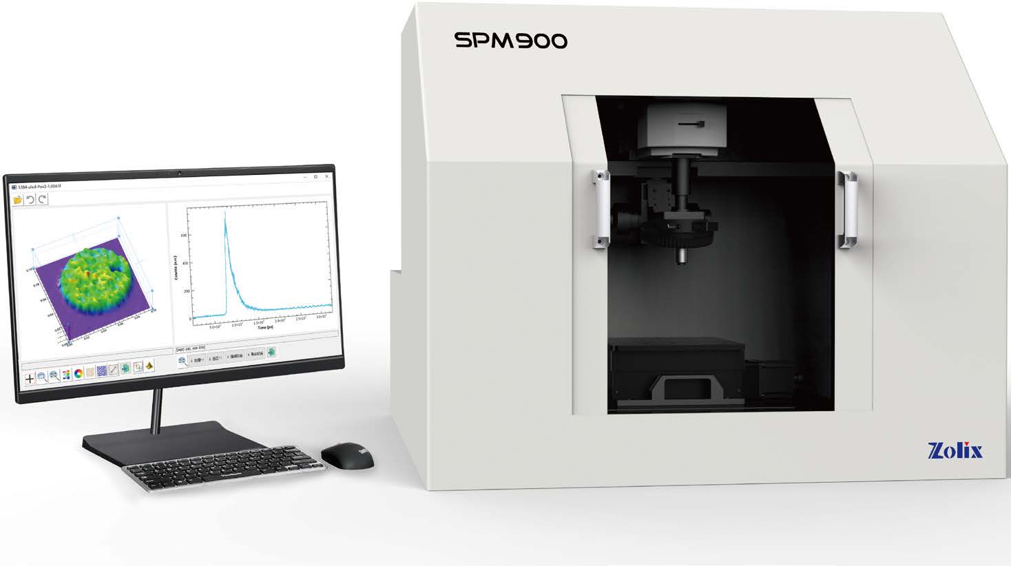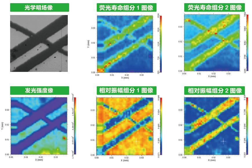 控制功能:控制樣品平移臺(tái)移動(dòng),通過(guò)顯微鏡的明場(chǎng)光學(xué)像定位到合適區(qū)域, 框選掃描區(qū)域進(jìn)行掃描,逐點(diǎn)獲得發(fā)光衰減曲線,實(shí)時(shí)生成發(fā)光圖像等 數(shù)據(jù)處理功能:自動(dòng)對(duì)掃描獲得的壽命成像數(shù)據(jù),逐點(diǎn)進(jìn)行多組分發(fā)光壽命擬合 ( 組分?jǐn)?shù)小于等于4),對(duì)逐點(diǎn)擬合獲得的發(fā)光強(qiáng)度、發(fā)光壽命等信息生成偽彩色圖像顯示 圖像處理功能:直方圖、色表、等高線、截線分析、3D 顯示等 |