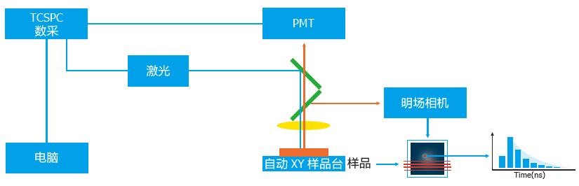 當(dāng)在顯微鏡上加載少子壽命測(cè)試模塊,就可以得到微區(qū)下半導(dǎo)體器件的少子壽命分布信息,這對(duì)于微小型器件的研究及質(zhì)量控制十分重要。激光掃描少子壽命成像儀基于時(shí)間相關(guān)單光子計(jì)數(shù)進(jìn)行設(shè)計(jì),包含顯微鏡主體,激光光源,光子計(jì)數(shù)檢測(cè)器,單色儀以及自動(dòng)XY 樣品臺(tái)等部分。位于顯微鏡上的激光光源用于樣品的激發(fā),通過(guò)控制樣品臺(tái)的移動(dòng),可以進(jìn)行微區(qū)單點(diǎn)少子壽命測(cè)量和少子壽命成像。