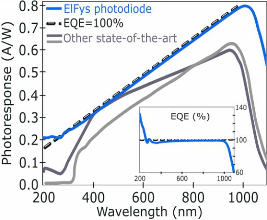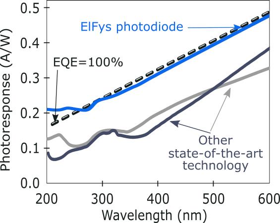 此光電探測(cè)器在紫外波段也同樣具有極高的量子效率,比普通的硅光電二極管高出兩倍以上。