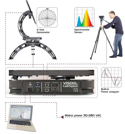 LabSpion是一個完整的光測量解決方案,覆蓋小型燈具,LED芯片,大型燈具及路燈等幾乎所有光源。 兩軸分布式光度計使系統能夠測量任何燈的完整3D光強分布區域,并能提供全面的LDT和IES模擬文件。