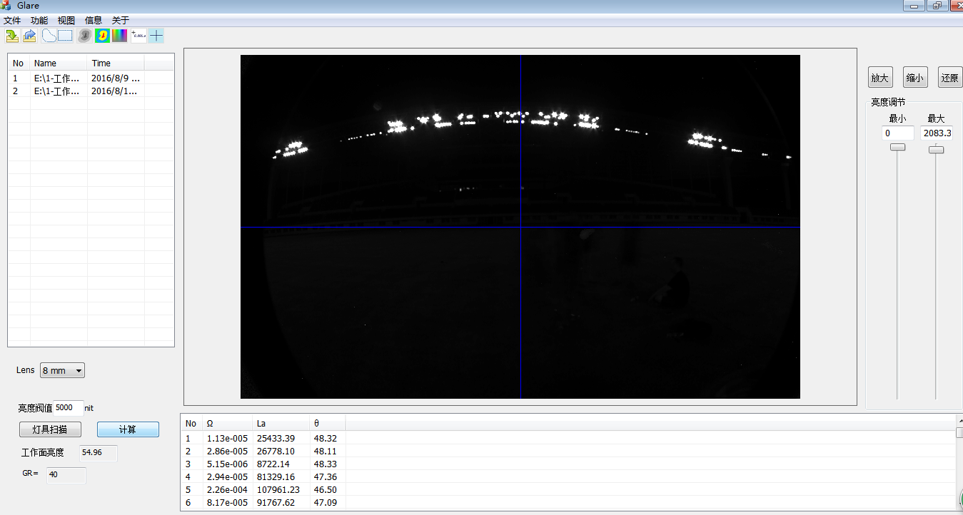 眩光測試已經成為世界各國在建筑照明和道路照明上重點關注的項目, 快速準確得到眩光值已迫在眉睫。為解決眩光快速準確測試的難題,北京卓立漢光儀器有限公司針對此難題開發了眩光測試系統及眩光測試軟件。眩光測試軟件主要通過分析成像亮度計的影像信息,對法規規定的眩光評價指標(統一眩光值UGR,眩光值GR,道路照明閾值增量Ti)進行計算和測量。